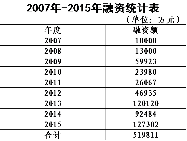 河池市城投公司2007年-2015年融資統計表